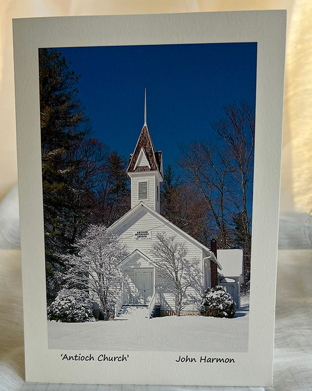 The Antioch Church in Roaring Gap on a Winter day. Carolina blue skies with a fresh snowfall.