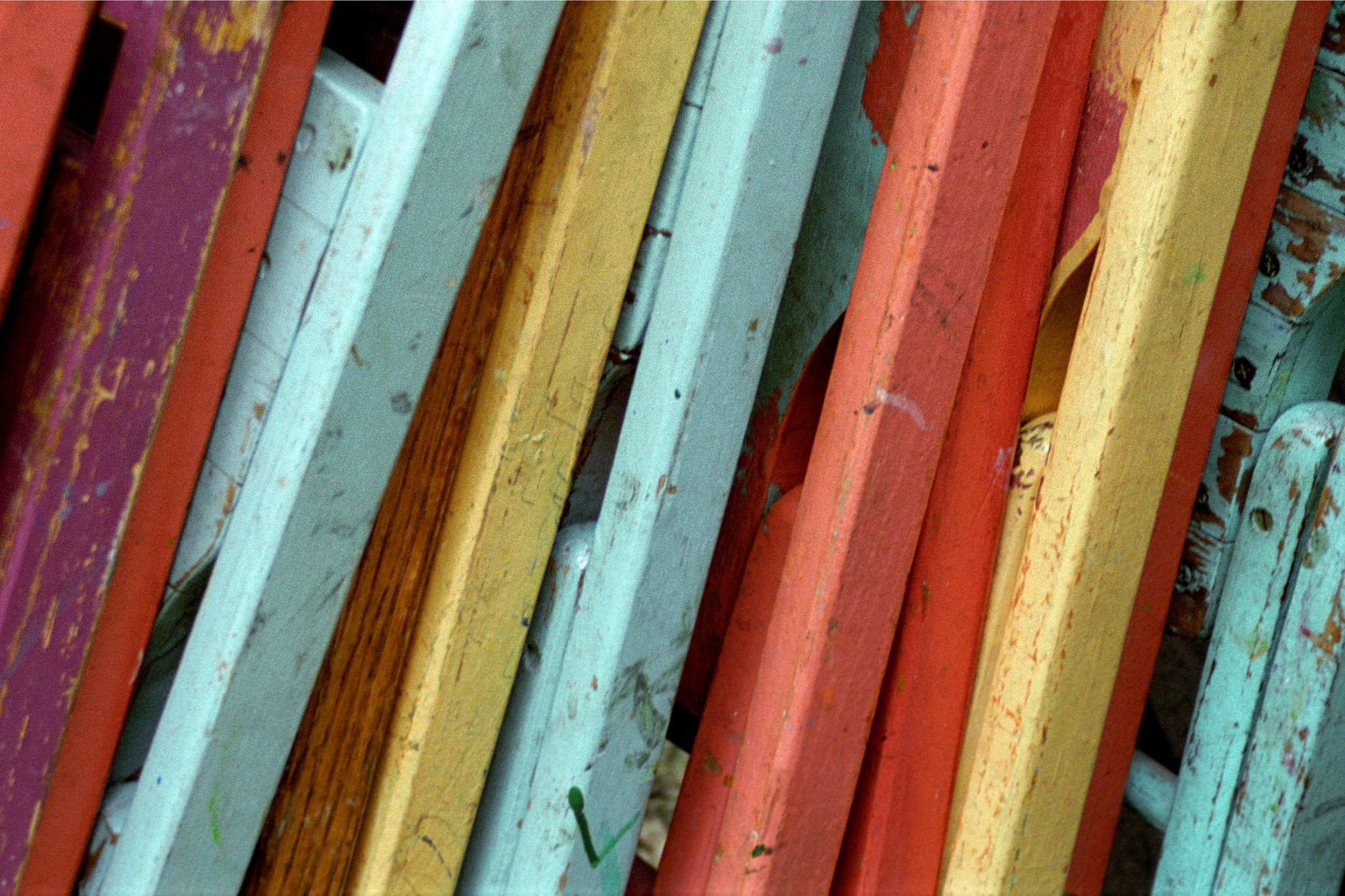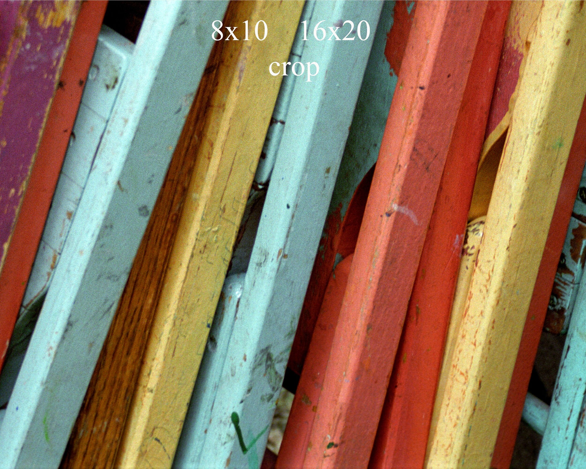 Folding chairs leaning against a porch. A very happy image suitable for a child's room, also the pastel and primary colors enhance the space. I found these brightly painted folding chairs at an art center in Northern Ohio. The print will be titled " Pastel Chairs II " and signed in the white border.