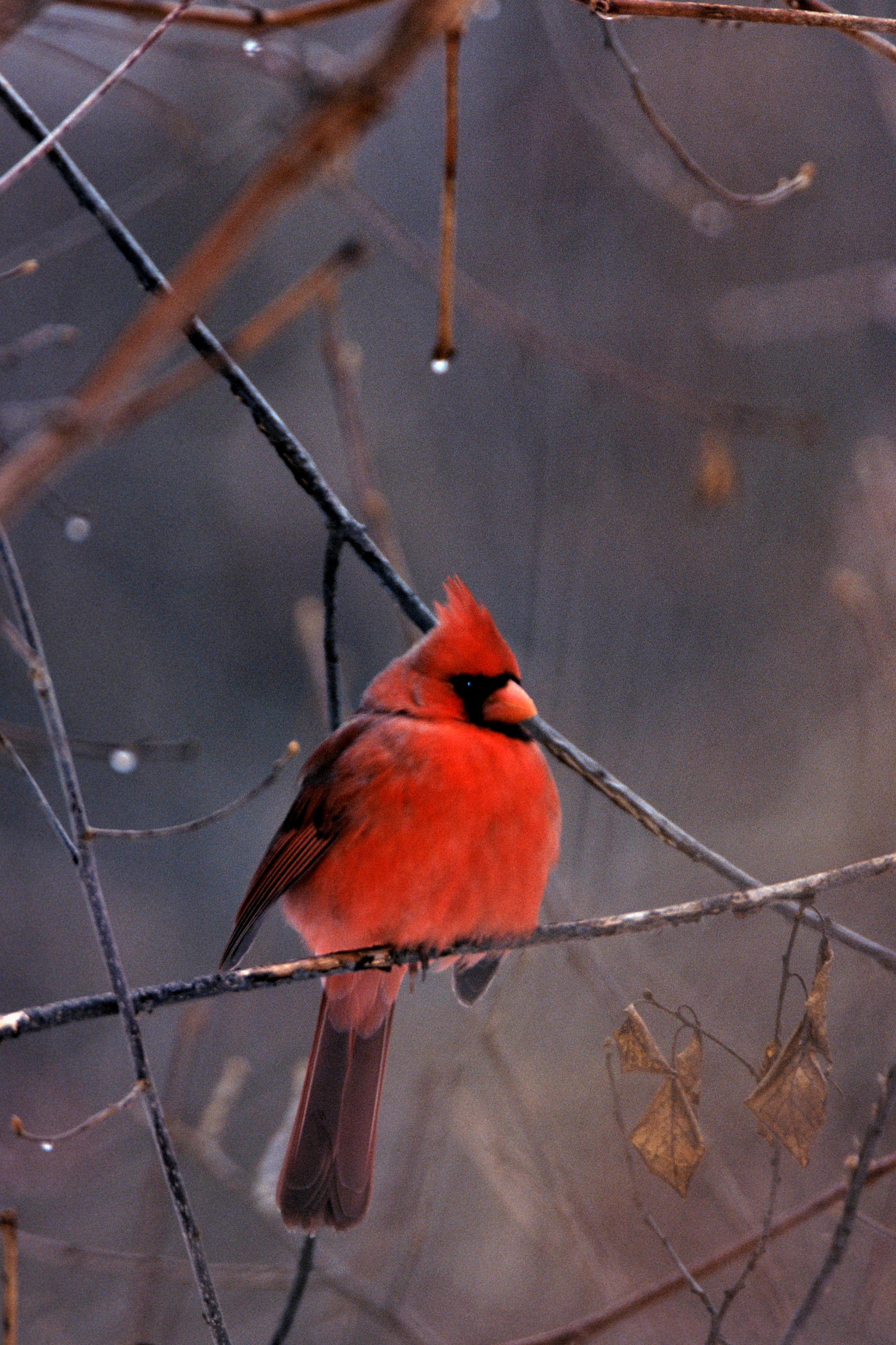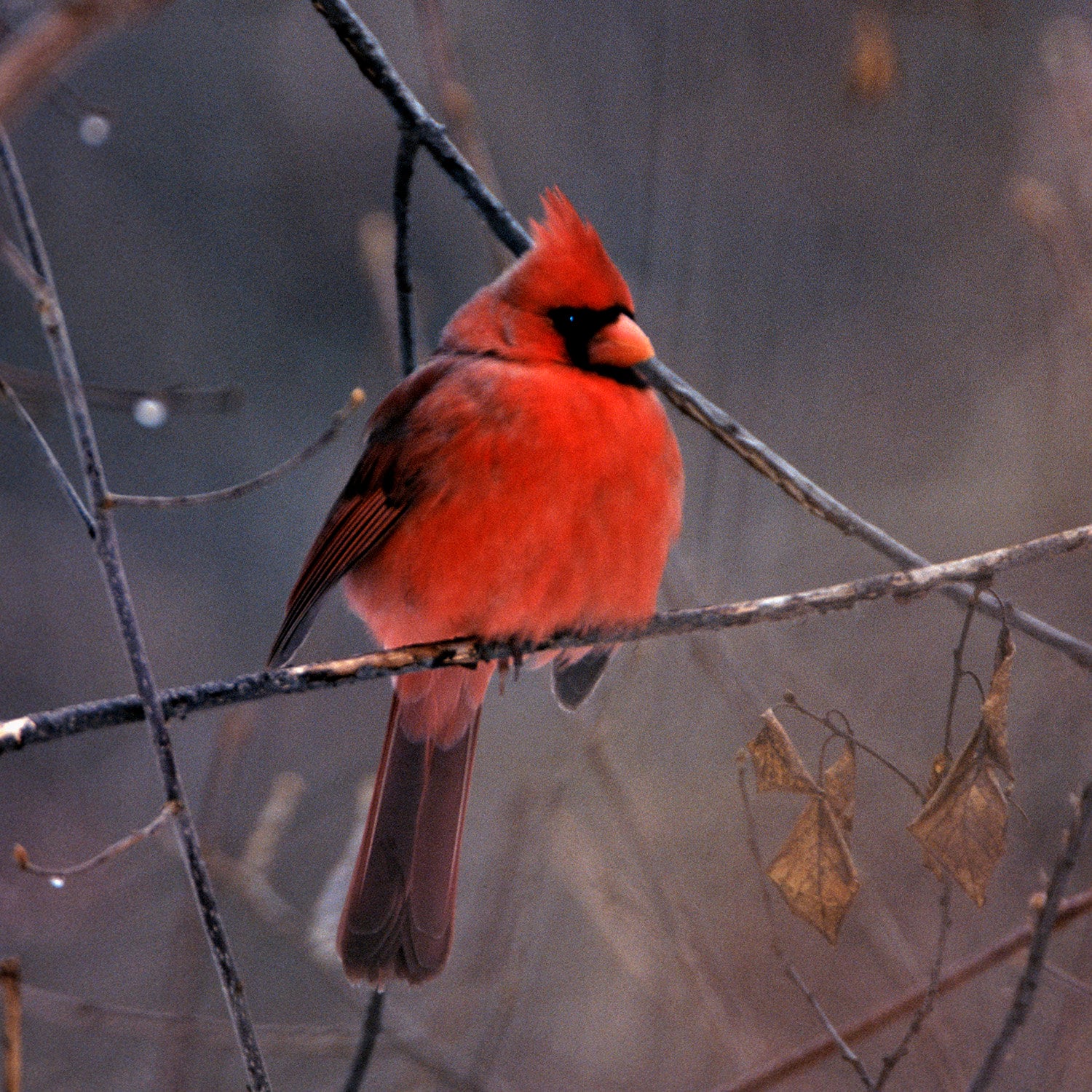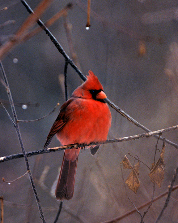 Red Male Cardinal In Winter setting, Fine Art Bird Photograph
